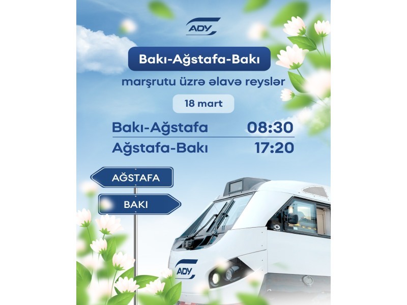 Для удовлетворения растущего пассажирского спроса ЗАО "Азербайджанские железные дороги" (АЖД) назначило на 18 марта дополнительные рейсы по маршруту Баку - Агстафа - Баку.