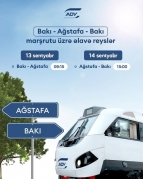 ЗАО "Азербайджанские железные дороги" (АЖД) с целью удовлетворения пассажирского спроса назначило дополнительные рейсы поездов 13 сентября по направлению Баку - Агстафа, а 14 сентября обратно.
