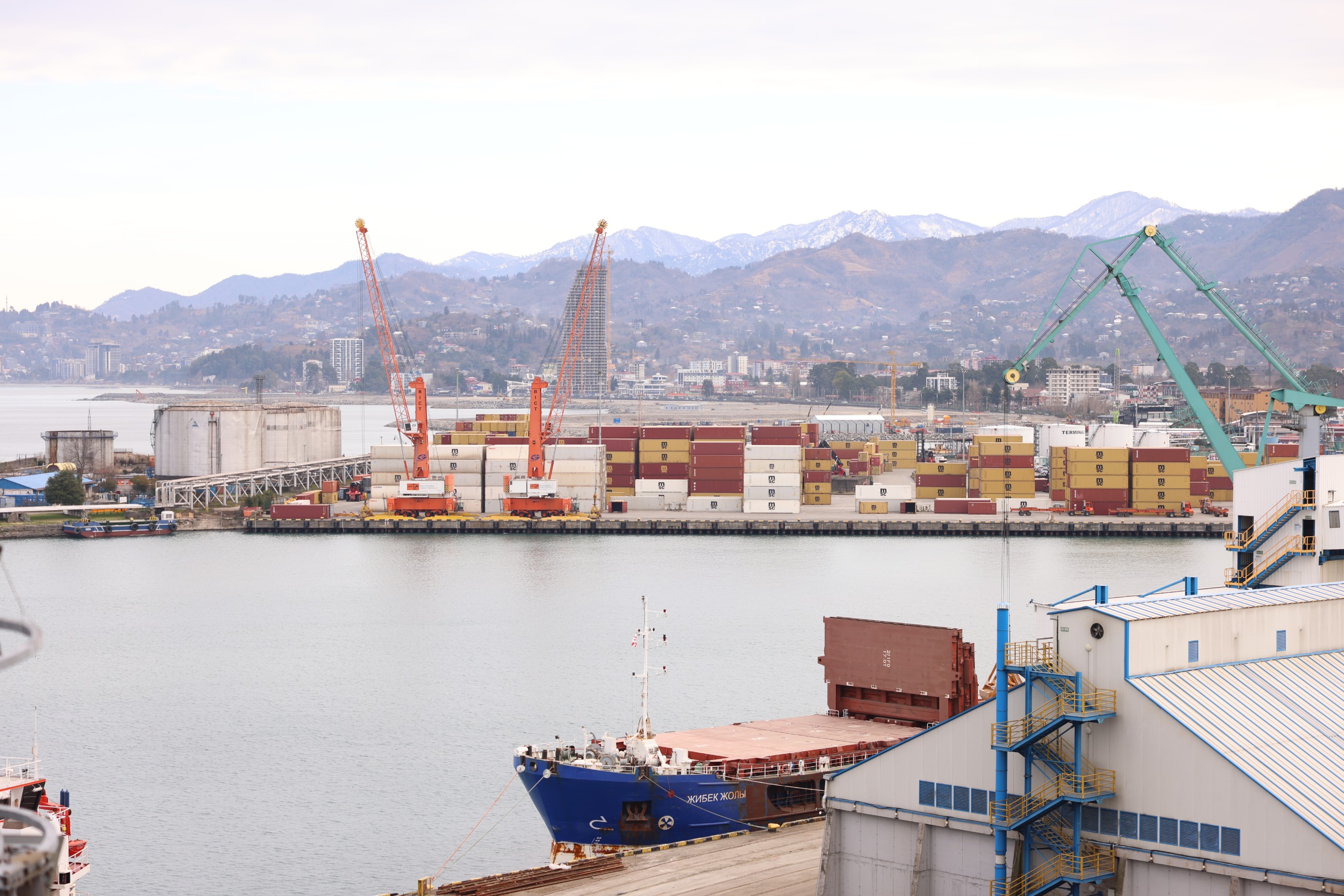 Ознакомившейся с деятельностью портов делегации АЖД была представлена информация о том, что обладающие стратегическим положением на Черном море порты Батуми и Поти располагают передовой инфраструктурой для обработки множества видов грузов.