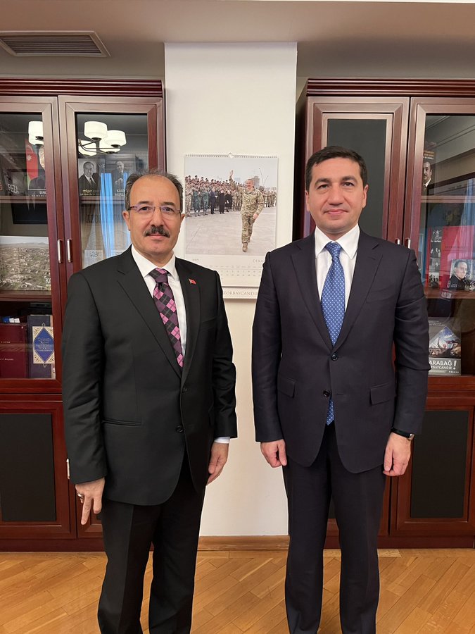 Посол Турции в Азербайджане Джахит Багчи встретился с помощником Президента Азербайджана - заведующим отделом по вопросам внешней политики Администрации главы государства Хикметом Гаджиевым.