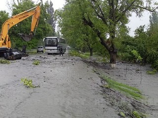 Сильный ливень нанес большой ущерб сельскохозяйственным участкам и дорогам. На места были привлечены сотрудники соответствующих учреждений.