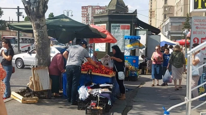 Торговля на тротуарах в Баку создает опасность для пешеходов - ВИДЕО