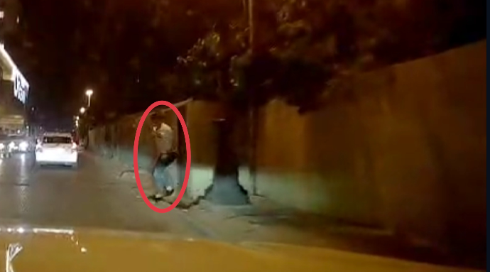 В Баку автомобиль чуть не сбил выпрыгнувшего на дорогу пешехода - ВИДЕО