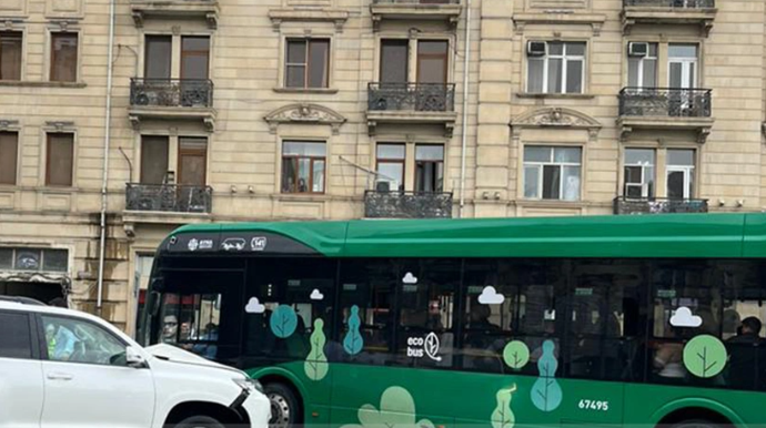 В Баку из-за дождя Toyota Prado столкнулась с автобусом - ФОТО