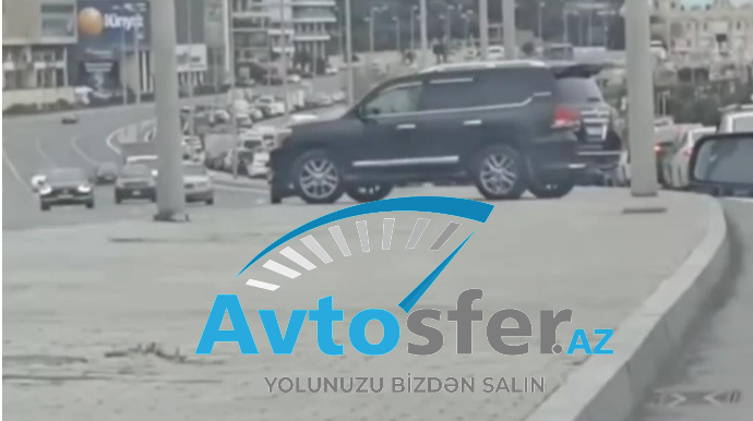 В Баку водитель дорогого авто выехал на встречную дорогу через островок безопасности - ВИДЕО