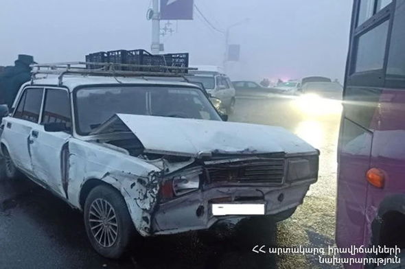 Сразу 27 машин столкнулись на Давидашенском мосту в Ереване, сообщает МЧС Армении.