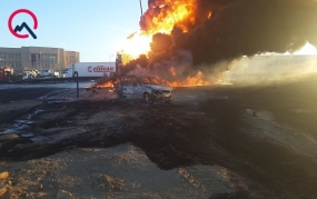 В поселке Гобустан Гарадагского района Баку грузовик КАМАЗ столкнулся с бензовозом.