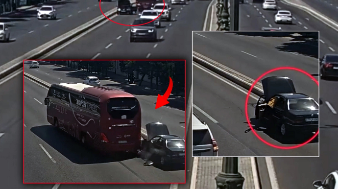 Водитель неисправного автомобиля погиб под колесами автобуса - ВИДЕО