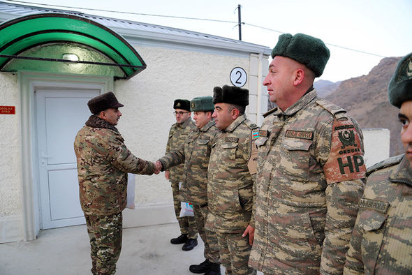 По поручению министра обороны заместители министра - начальник Главного управления материально-технического обеспечения генерал-лейтенант Низам Османов и командующий Сухопутными войсками генерал-лейтенант Энвер Эфендиев осмотрели недавно построенные пункты размещения на территории Кельбаджарского района и встретились с военнослужащими, несущими службу на боевых позициях.