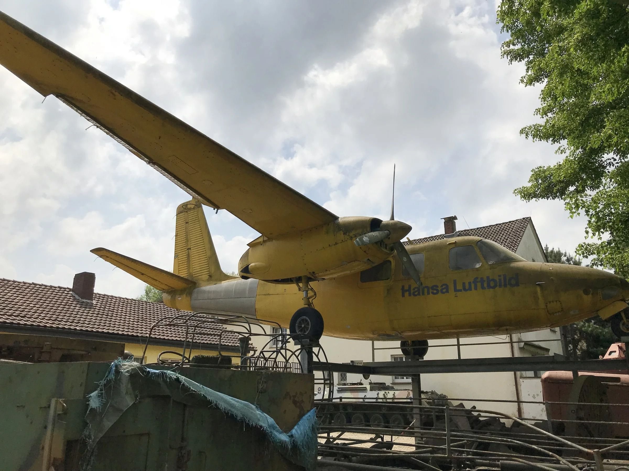 Двухмоторный самолет «Aero Commander 680». Эксплуатирующийся судя по надписи в компании «Hunsa Luftbild», которая занимается аэрофотосъемкой и по сей день. Страна производства США. Начали производить его в далеком 1960 году, а выпущено было всего три сотни таких самолетов.