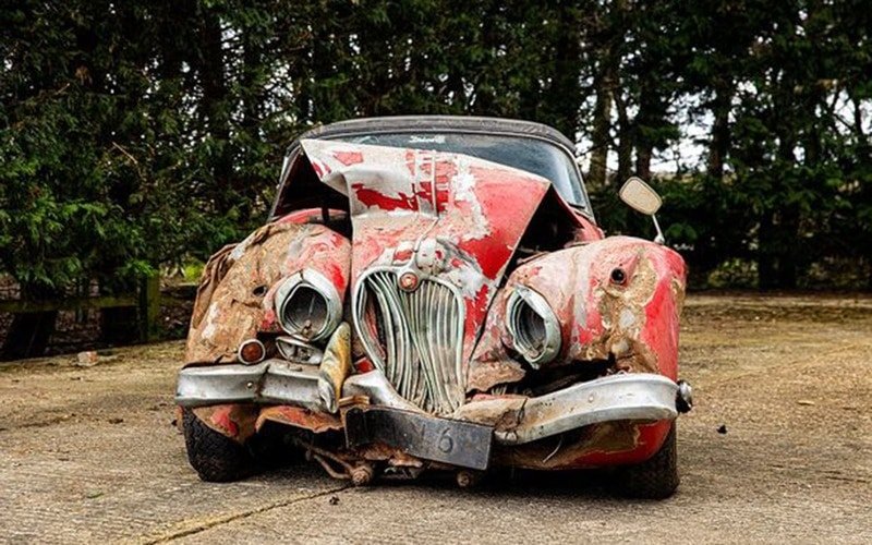 Однако машина провела в аварийном виде четверть века, попутно покрываясь пылью и ржавчиной до тех пор, пока автовладелец не скончался и его имущество не стали распродавать. Новые хозяева Jaguar XK150 надеялись выручить за автомобиль хоть какие-то деньги, поскольку он находился в весьма плачевном техническом состоянии.
