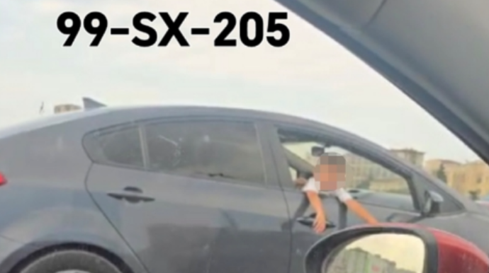 Водитель автомобиля марки KIA с госномером 99-SX-205 оставил малолетнего ребенка без присмотра на переднем сиденье. Ребенок начал играться, высовывая руки из окна, а водитель никак не отреагировал.
